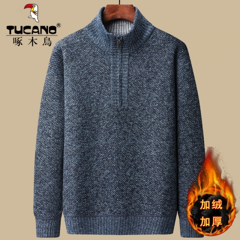 啄木鸟中老年人加绒加厚秋冬毛衣男中年爸爸装针织衫爷爷保暖上衣